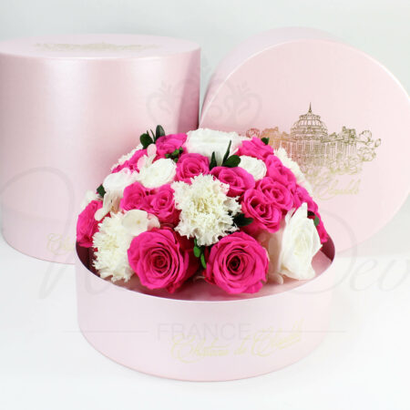 Boîte pour fleurs, ronde rose avec couvercle haut | SAS «NEWDEV»