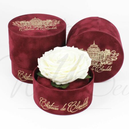 Mini boîte pour fleurs, en velours, ronde bordeaux | SAS «NEWDEV»