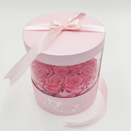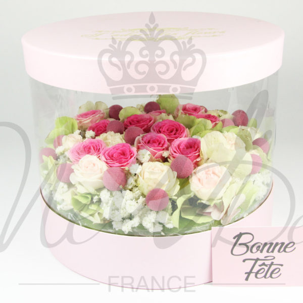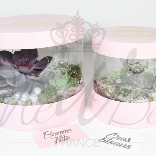 Pack de 3 boîtes pour fleurs, rondes roses transparentes | SAS «NEWDEV»