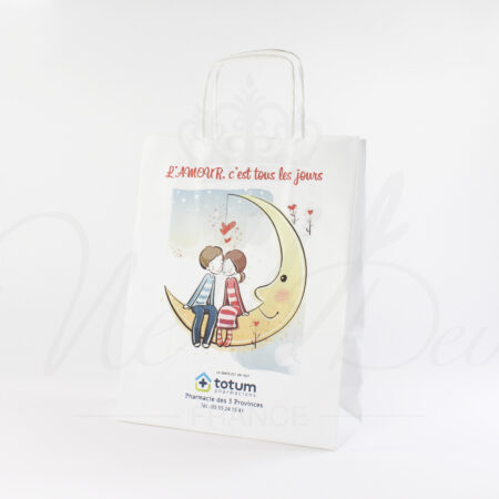 Connectez-vous ou inscrivez-vous pour voir les prix!Sac papier kraft, couleur blanc, taille moyenne, personnalisé