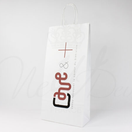 Connectez-vous ou inscrivez-vous pour voir les prix!Sac papier kraft pour 1 bouteille, couleur blanche, personnalisé
