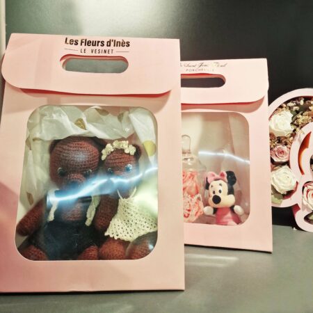 Option sur demande: possibilité d’imprimer le nom de votre boutique, zone d’impression H2,2×9 cm, prix 0,8€ pour 1 sac