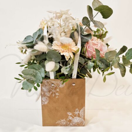 Dimensions: 13х13, H14,5 cm Quantité: 10 sacs/paquet Papier: 250 g, kraft naturel, intérieur lamination mate Logo: – Anse: papier pressé 11 mm