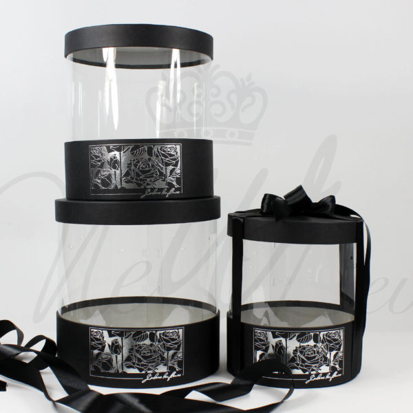 Connectez-vous ou inscrivez-vous pour voir les prix!Pack de 3 boîtes pour fleurs, rondes noires transparentes