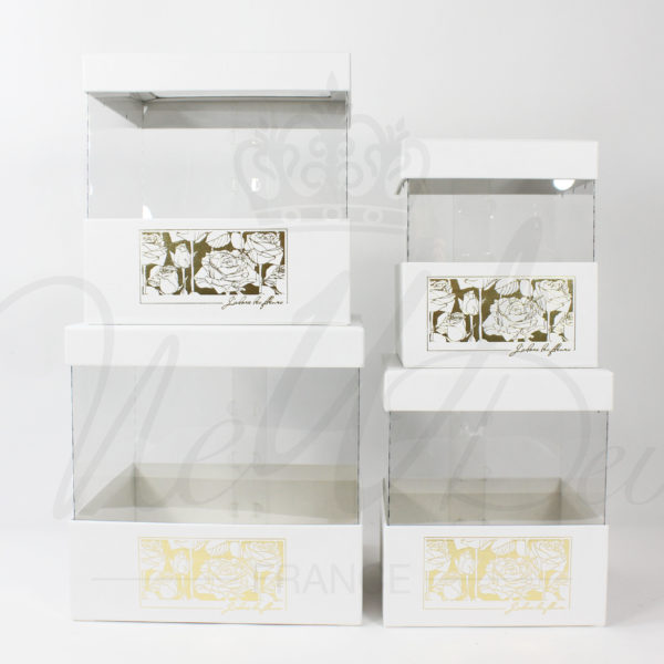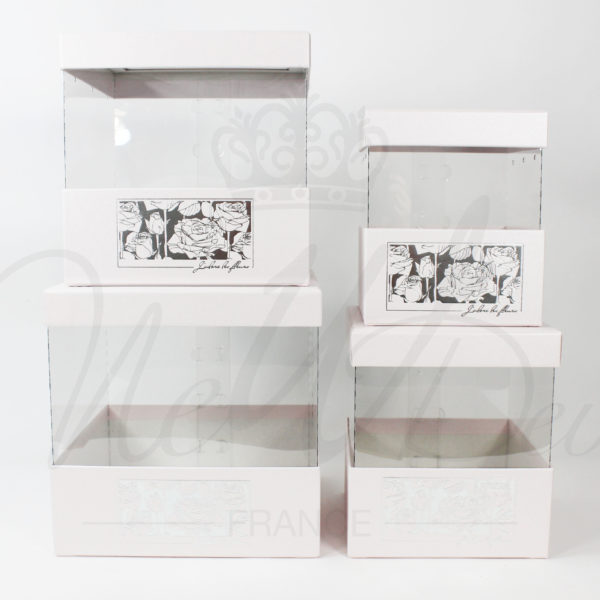 Connectez-vous ou inscrivez-vous pour voir les prix!Pack de 4 boîtes pour fleurs, carrées blanches transparentes