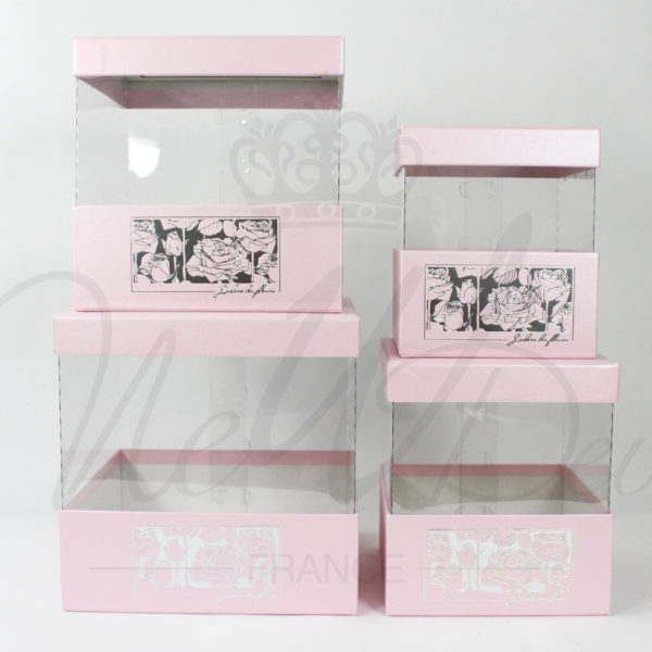 Connectez-vous ou inscrivez-vous pour voir les prix!Pack de 4 boîtes pour fleurs, carrées roses transparentes